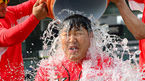 [OSEN=대전, 민경훈 기자] 22일 오후 대전 한밭야구장에서 '2014 한국야쿠르트 세븐 프로야구' 한화 이글스와 SK 와이번스의 경기가 열릴 예정인 가운데 한화 정근우와 SK 이만수 감독이 아이스버킷챌린지를 가졌다. 한화 정근우가