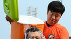 [OSEN=대전, 민경훈 기자] 22일 오후 대전 한밭야구장에서 '2014 한국야쿠르트 세븐 프로야구' 한화 이글스와 SK 와이번스의 경기가 열릴 예정인 가운데 한화 정근우와 SK 이만수 감독이 아이스버킷챌린지를 가졌다. 한화 정근우가