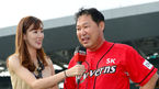 [OSEN=대전, 민경훈 기자] 22일 오후 대전 한밭야구장에서 '2014 한국야쿠르트 세븐 프로야구' 한화 이글스와 SK 와이번스의 경기가 열릴 예정인 가운데 한화 정근우와 SK 이만수 감독이 아이스버킷챌린지를 가졌다. SK 이만수 감독