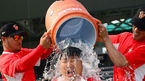 [OSEN=대전, 민경훈 기자] 22일 오후 대전 한밭야구장에서 '2014 한국야쿠르트 세븐 프로야구' 한화 이글스와 SK 와이번스의 경기가 열릴 예정인 가운데 한화 정근우와 SK 이만수 감독이 아이스버킷챌린지를 가졌다. SK 이만수 감독