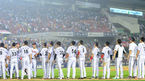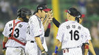 [OSEN=대전, 민경훈 기자] 22일 오후 대전 한밭야구장에서 열린 '2014 한국야쿠르트 세븐 프로야구' 한화 이글스와 SK 와이번스의 경기, 7회말 1사 주자 2루 한화 강경학이 좌중간 1타점 3루타 때 홈을 밟은 이용규가 덕아웃에서 동료