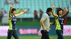 [OSEN=전주, 민경훈 기자] 23일 오후 전주월드컵경기장에서 열린 전북 현대와 FC 서울의 '현대오일뱅크 K리그 클래식 2014' 22라운드 경기, 현대건설 힐스테이트 여자 배구단의 황연주(가운데)가 전북 현대 선수들과 하이파이브를