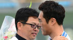 [OSEN=부산, 백승철 기자] 23일 오후 부산 사직구장에서 열린 '2014 한국야쿠르트 세븐 프로야구' 롯데 자이언츠와 LG 트윈스의 경기 종료후 조성환이 은퇴식에서 박준서와 포옹을 나누고 있다. 경기는 이병규(7번)의 활약을 앞세운