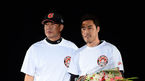 [OSEN=부산, 백승철 기자] 23일 오후 부산 사직구장에서 열린 '2014 한국야쿠르트 세븐 프로야구' 롯데 자이언츠와 LG 트윈스의 경기 종료후 조성환이 은퇴식에서 박준서와 기념촬영을 하고 있다. 경기는 이병규(7번)의 활약을 앞세