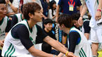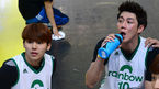 [OSEN=김경섭 기자] 24일 오후 서울 영등포 타임스퀘어 아트리움에서 열린 아디다스 '크레이지코트 2014' 레인보우 연예인 농구팀 vs 제물포 고등학교의 경기, 레인보우팀의 작전타임 시간 정진운이 이야기를 하고 있다. 아디다스 '