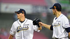 [OSEN=잠실, 지형준 기자] 24일 오후 서울 잠실야구장에서 열린 '2014 한국야쿠르트 세븐 프로야구' 두산 베어스와 NC 다이노스의 경기, 2회초수비를 마친 두산 마야가 칸투와 주먹을 맞대고 있다. 이날 NC는 에릭 해커를 선발로 내세