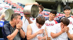 [OSEN=잠실, 지형준 기자] 24일 오후 서울 잠실야구장에서 열린 '2014 한국야쿠르트 세븐 프로야구' 두산 베어스와 NC 다이노스의 경기, 경기에 앞서 두산 박정원 구단주가 아이스버킷챌린지를 마치고 더그아웃에서 송일수 감독과