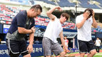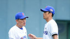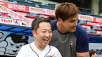 [OSEN=대구, 백승철 기자] 24일 오후 대구 시민구장에서 열리는 '2014 한국야쿠르트 세븐 프로야구' 삼성 라이온즈와 SK 와이번스의 경기 시작전 나바로가 아이스버킷챌린지 중 도망가자 박석민이 나바로를 다시 자리로 안내 하고
