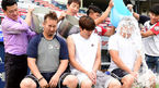 [OSEN=잠실, 지형준 기자] 24일 오후 서울 잠실야구장에서 열린 '2014 한국야쿠르트 세븐 프로야구' 두산 베어스와 NC 다이노스의 경기, 경기에 앞서 두산 유희관, 김재호, 양의지가 아이스버킷챌린지를 마치고 몸을 못가누고 있다.