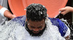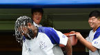 [OSEN=대구, 백승철 기자] 24일 오후 대구 시민구장에서 열리는 '2014 한국야쿠르트 세븐 프로야구' 삼성 라이온즈와 SK 와이번스의 경기 시작전 나바로가 아이스버킷챌린지에 동참하고 있다. 나바로는 박석민으로부터 지목을 받