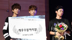 [OSEN=김경섭 기자] 23일 오후 서울 성동구 소월아트홀에서 'JYP 공채 11기 연습생 오디션 최종 라운드'가 열렸다. 오디션에서 인기상을 차지한 남자보컬팀이 기쁨을 나누고 있다. 이날 최종 라운드에는 모델팀, 동아리팀, 여자보컬