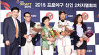 [OSEN=김경섭 기자] 25일 오후 르네상스 서울 호텔에서 '2015 프로야구 신인 2차 지명회의'가 열렸다. 경성대 이민우가 KIA 타이거즈에 1차 지명되어 가족, 관계자와 함께 포토타임을 갖고 있다. 고등학교 졸업자와 대학 졸업 예정자