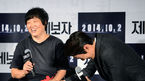 [OSEN=지형준 기자] 배우 박해일, 이경영, 유연석 등이 출연하는 영화 '제보자' 제작보고회(임순례 감독)가 25일 오전 서울 메가박스 동대문에서 열렸다. 임순례 감독과 유연석이 간담회 도중 미소지으며 즐거워하고 있다. '제보