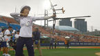 [OSEN=목동, 최규한 기자] 오는 9월 인천 아시아경기대회에 출전하는 양궁 국가대표팀이 26일 오후 목동야구장에서 넥센과 KIA의 2연전에 앞서 소음 및 관중 적응 훈련을 실시했다. 리커브 양궁 남여 대표팀이 훈련을 진행하고 있