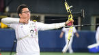 [OSEN=목동, 최규한 기자] 오는 9월 인천 아시아경기대회에 출전하는 양궁 국가대표팀이 26일 오후 목동야구장에서 넥센과 KIA의 2연전에 앞서 소음 및 관중 적응 훈련을 실시했다. 남자 양궁대표팀 김우진이 힘차게 활을 쏘고 있