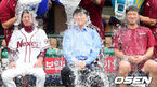 [OSEN=목동, 고유라 기자] 넥센 히어로즈의 '고위층'이 모두 얼음물을 맞았다. 이장석 대표와 염경엽 감독, 주장 이택근은 26일 목동구장에서 열리는 KIA 타이거즈전을 앞두고 그라운드에 마련된 의자에 나란히 앉았다. 나란히 '아
