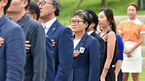 [OSEN=인천, 이대선 기자] 26일 인천 구월동 구월아시아드선수촌보금자리에서 2014인천AG 선수촌 사전 홍보를 위한 보도진 공개행사가 열렸다. 이에리사 선수촌장이 국민의례를 하고 있다. 우리나라는 이번 대회에 역대 최대 규모