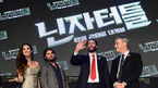 [OSEN=지형준 기자] 영화 '닌자터틀' 레드카펫 행사가 26일 오후 서울 여의도 IFC몰에서 열렸다. 메간 폭스가 무대에 올라 조나단 리브스만 감독, 제작자 브래드 풀러, 앤드류 폼과 포즈를 취하고 있다. '닌자터틀'은 범죄가 난무하