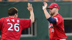 [OSEN=목동, 백승철 기자] 27일 오후 서울 목동구장에서 열린 '2014 한국야쿠르트 세븐 프로야구' 넥센 히어로즈와 KIA 타이거즈의 경기 1회말 삼진 세개를 잡고 마친 토마스가 덕아웃으로 향하며 서재응과 하이파이브를 하고 있다.