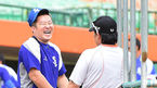 [OSEN=부산, 최규한 기자] 27일 오후 부산 사직구장에서 열리는 '2014 한국야쿠르트 세븐 프로야구' 롯데 자이언츠와 삼성 라이온즈의 경기를 앞두고, 삼성 최형우와 롯데 박흥식 코치가 인사를 나누고 있다. 삼성은 외국인 투수 J.