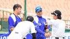 [OSEN=부산, 최규한 기자] 27일 오후 부산 사직구장에서 열리는 '2014 한국야쿠르트 세븐 프로야구' 롯데 자이언츠와 삼성 라이온즈의 경기를 앞두고, 삼성 채태인-이승엽과 롯데 박흥식-김응국 코치가 인사를 나누고 있다. 삼성은
