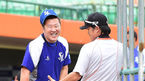 [OSEN=부산, 최규한 기자] 27일 오후 부산 사직구장에서 열리는 '2014 한국야쿠르트 세븐 프로야구' 롯데 자이언츠와 삼성 라이온즈의 경기를 앞두고, 삼성 최형우와 롯데 박흥식 코치가 인사를 나누고 있다. 삼성은 외국인 투수 J.