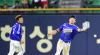 [OSEN=잠실, 민경훈 기자] 28일 오후 서울 잠실야구장에서 열린 '2014 한국야쿠르트 세븐 프로야구' 두산 베어스와 삼성 라이온즈의 경기, 5회말 1사 주자 1,3루 두산 홍성흔의 중견수 앞 1타점 적시타때 삼성 중견수 박해민이 볼을