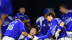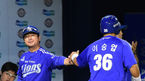 [OSEN=잠실, 민경훈 기자] 28일 오후 서울 잠실야구장에서 열린 '2014 한국야쿠르트 세븐 프로야구' 두산 베어스와 삼성 라이온즈의 경기, 6회초 2사 주자 2루 삼성 박해민의 우익수 앞 1타점 적시타때 홈을 밟은 이승엽이 덕아웃에