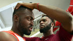 [OSEN=대전,손용호 기자] 28일 대전야구장에서 벌어진 '2014 한국 야쿠르트세븐 프로야구' 한화 이글스와 넥센 히어로즈의 경기전 소사가 피에의 머리 카락을 손질해주고 있다. 한화는 지난 22일 대전 SK전 이태양(6⅔이닝·1자책)을