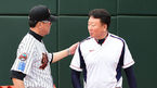 [OSEN=부산, 최규한 기자] 28일 오후 부산 사직구장에서 열리는 '2014 한국야쿠르트 세븐 프로야구' 롯데 자이언츠와 KIA 타이거즈의 경기를 앞두고, 롯데 김시진 감독과 KIA 선동렬 감독이 인사를 나누고 있다. 롯데는 송승준이 선발