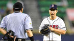 [OSEN=잠실, 백승철 기자] 29일 오후 서울 잠실구장에서 열린 '2014 한국야쿠르트 세븐 프로야구' 두산 베어스와 삼성 라이온즈의 경기 6회초 무사 1루 최형우 타석, 유희관의 1루 견제가 계속 이어지자 주심이 주의를 주고 있다. 삼