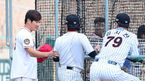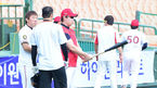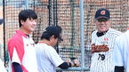 [OSEN=부산, 최규한 기자] 29일 오후 부산 사직구장에서 열리는 '2014 한국야쿠르트 세븐 프로야구' 롯데 자이언츠와 KIA 타이거즈의 경기를 앞두고, 롯데 박흥식 코치와 김시진 감독이 KIA 김주찬과 인사를 나누고 있다. 롯데는 시즌