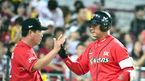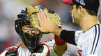 [OSEN=잠실, 백승철 기자] 30일 오후 서울 잠실구장에서 열린 '2014 한국야쿠르트 세븐 프로야구' LG 트윈스와 롯데 자이언츠의 경기 5회초 2사 1,3루 박종윤을 외야플라이로 처리한 리오단과 최경철이 하이파이브를 하고 있다. LG 트