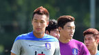 [OSEN=파주, 곽영래 기자] 이광종 감독이 이끄는 인천아시안게임 남자 대표팀이 1일 오전 경기도 파주 NFC(트레이닝센터)에 소집됐다. 대표팀 장현수가 김승규와 이야기를 나누며 러닝을 하고 있다. 28년 만에 금메달에 도전하는