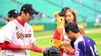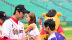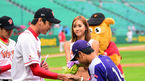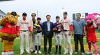 [OSEN=문학,박준형 기자] 2일 오후 인천 문학구장에서 열리는 2014 한국야쿠르트 세븐 프로야구 SK 와이번스와 한화 이글스의 경기에 앞서 리틀야구 월드시리즈에서 우승한 한국 리틀야구단 문태민(남동리틀야구단)과 신동완(부평