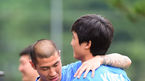 [OSEN=파주, 민경훈 기자] 한국 축구A대표팀이 2일 오후 경기도 파주 NFC(트레이닝센터)에서 훈련을 가졌다. 차두리가 곽태휘의 옆구리를 만지고 있다. 축구대표팀은 이날 소집돼 오는 5일과 8일 각각 베네수엘라와 우루과이를 상