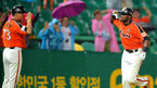 [OSEN=문학,박준형 기자] 2일 오후 인천 문학구장에서 열린 2014 한국야쿠르트 세븐 프로야구 SK 와이번스와 한화 이글스의 경기,7회초 한화 선두타자 피에가 동점 솔로홈런을 날리고 이종범 코치에게 거수경례를 하고 있다. SK와