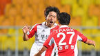 [OSEN=수원,박준형 기자] 3일 오후 수원월드컵경기장에서 열린 현대오일뱅크 K리그 클래식 2014 수원 삼성과 부산 아이파크의 경기,후반 부산 김익현이 동점 프리킥골을 넣은 후 윤성효 감독과 이야기를 나누고 있다 강등권 탈출