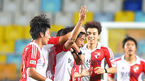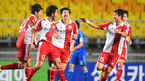 [OSEN=수원,박준형 기자] 3일 오후 수원월드컵경기장에서 열린 현대오일뱅크 K리그 클래식 2014 수원 삼성과 부산 아이파크의 경기,후반 부산 김익현이 동점 프리킥골을 넣은 후 환호하고 있다. 강등권 탈출을 꿈꾸는 부산과 선두