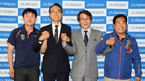 [OSEN=부산, 정송이 기자] 지난 6월 공개오디션을 통해 선발된 부산 카파FC 창단식이 4일 오후 부산 시청 국제회의실에서 진행됐다. 이태호 감독, 민복기 카파코리아대표이사, 박일진 구단주, 송재화 단장이 기념촬영을 하고 있다
