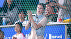 [OSEN=대구,박준형 기자] 5일 오후 대구구장에서 열린 '2014 한국야쿠르트 세븐 프로야구' 삼성 라이온스와 한화 이글스의 경기, 8회초 삼성 밴델헐크가 실점 위기를 넘기자 아내 애나가 기립해 박수를 치고 있다. 이날 경기에서 삼