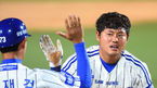 [OSEN=대구,박준형 기자] 5일 오후 대구구장에서 열린 '2014 한국야쿠르트 세븐 프로야구' 삼성 라이온스와 한화 이글스의 경기,6회말 1사 삼성 이지영이 3루타를 날린뒤 김재걸 코치와 하이파이브를 하고 있다. 이날 경기에서 삼성
