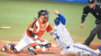[OSEN=대구,박준형 기자] 5일 오후 대구구장에서 열린 '2014 한국야쿠르트 세븐 프로야구' 삼성 라이온스와 한화 이글스의 경기,2회말 1사 2,3루 삼성 박해민의 외야플라이때 태그업 시도한 3루 주자 최형우가 한화 조인성 포수에게