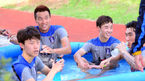 [OSEN=파주, 백승철 기자] 5일 오후 파주 트레이닝센터(NFC)에서 열린 아시안게임 축구 대표팀과 대전 코레일의 연습경기, 전반을 뛴 김신욱이 동료들과 이동식 간이풀장에 들어가 이야기를 나누고 있다. 28년만에 홈에서 금메달
