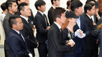 [OSEN=이대선 기자] 5일 오전 서울 고려대학교 안암병원 장례식장에서 걸그룹 레이디스코드 멤버 故 은비의 발인식이 진행됐다. 양동근과 정준이 발인식에 참석해 애도를 하고 있다. 은비는 지난 3일 새벽 발생한 교통사고로 안