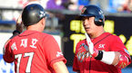[OSEN=잠실, 최규한 기자] 6일 오후 서울 잠실야구장에서 '2014 한국야쿠르트 세븐 프로야구' 두산 베어스와 SK 와이번스의 경기가 열렸다. 2회초 SK 공격 2사 만루 상황 정상호가 선제 좌월 만루홈런을 날리고 홈을 밟은 뒤 이만수