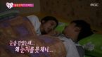 [OSEN=표재민 기자] 2PM 우영이 잠든 박세영의 볼에 우렁차게 뽀뽀를 하며 달달한 분위기를 만들었다. 우영은 6일 오후 MBC 예능프로그램 ‘우리 결혼했어요 시즌4’(이하 ‘우결4’)에서 민박집에 박세영과 함께 누워 키스신에 대