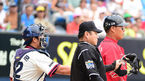 [OSEN=잠실, 최규한 기자] 7일 오후 서울 잠실야구장에서 '2014 한국야쿠르트 세븐 프로야구' 두산 베어스와 SK 와이번스의 경기가 열렸다. 8회초 SK 공격 2사 주자없는 상황 김상현이 두산 투수 김강률의 몸쪽 높은 공에 어필하고 있