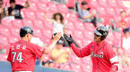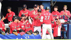 [OSEN=잠실, 최규한 기자] 7일 오후 서울 잠실야구장에서 '2014 한국야쿠르트 세븐 프로야구' 두산 베어스와 SK 와이번스의 경기가 열렸다. 6회초 SK 공격 2사 만루 상황 김상현이 좌월 만루포를 날리고 더그아웃 동료들과 인사를 나