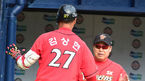 [OSEN=잠실, 최규한 기자] 7일 오후 서울 잠실야구장에서 '2014 한국야쿠르트 세븐 프로야구' 두산 베어스와 SK 와이번스의 경기가 열렸다. 6회초 SK 공격 2사 만루 상황 김상현이 좌월 만루포를 날리고 홈을 밟은 뒤 이만수 감독과